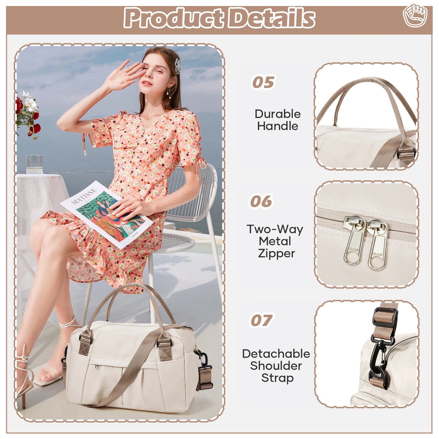 - Sac de type duffle, spécialement conçu pour les femmes.